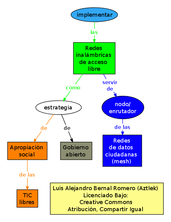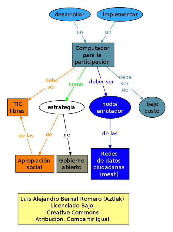 Pero aún antes de empezar. La mayoría de las ideas expresadas aquí no son mías, sino que las tomé y las articulé en un todo coherente e interdependiente. Por ello, debo reconocer y agradecer a las comunidades de Software, Hardware y Cultura Libre; también a los distintos colectivos de redes mesh, en especial a Bogota Mesh; y particularmente al equipo de Software Libre de la Secretaría Distrital de Gobierno. (Si encuentra ideas suyas en este escrito y no se siente representado en uno de los grupos anteriores por favor dígamelo en los comentarios para incluirlo).