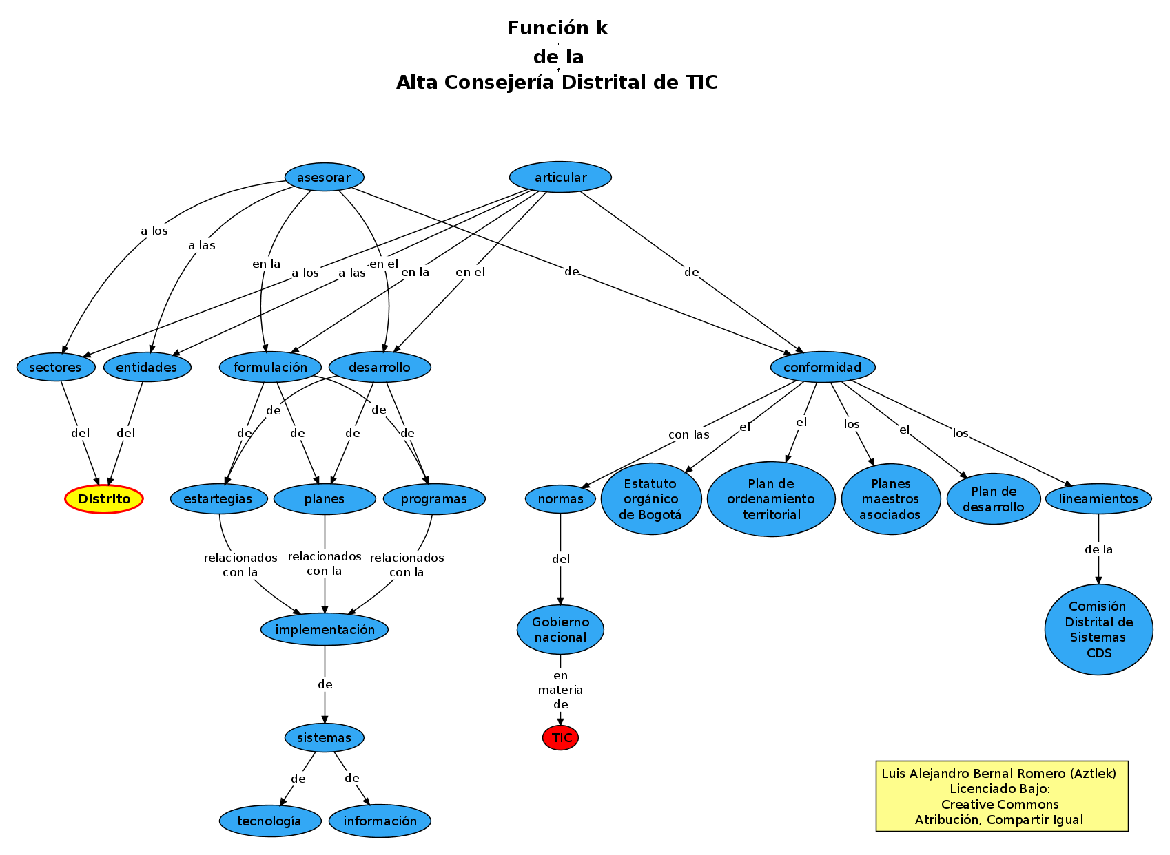 Mapa conceptual de la función «k» de la Oficina de Alta Consejería Distrital de Tecnologías de Información y Comunicaciones –TIC–