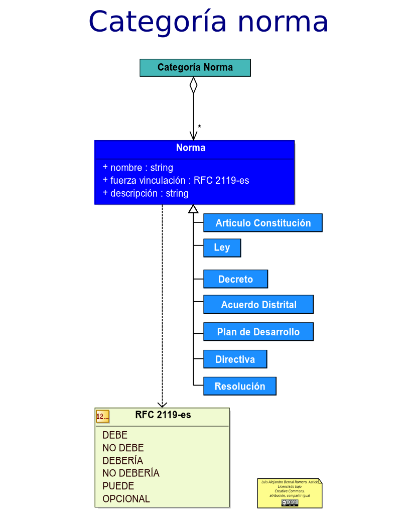 El siguiente diagrama es un subconjunto de las clases que tienen que ver con la normatividad.