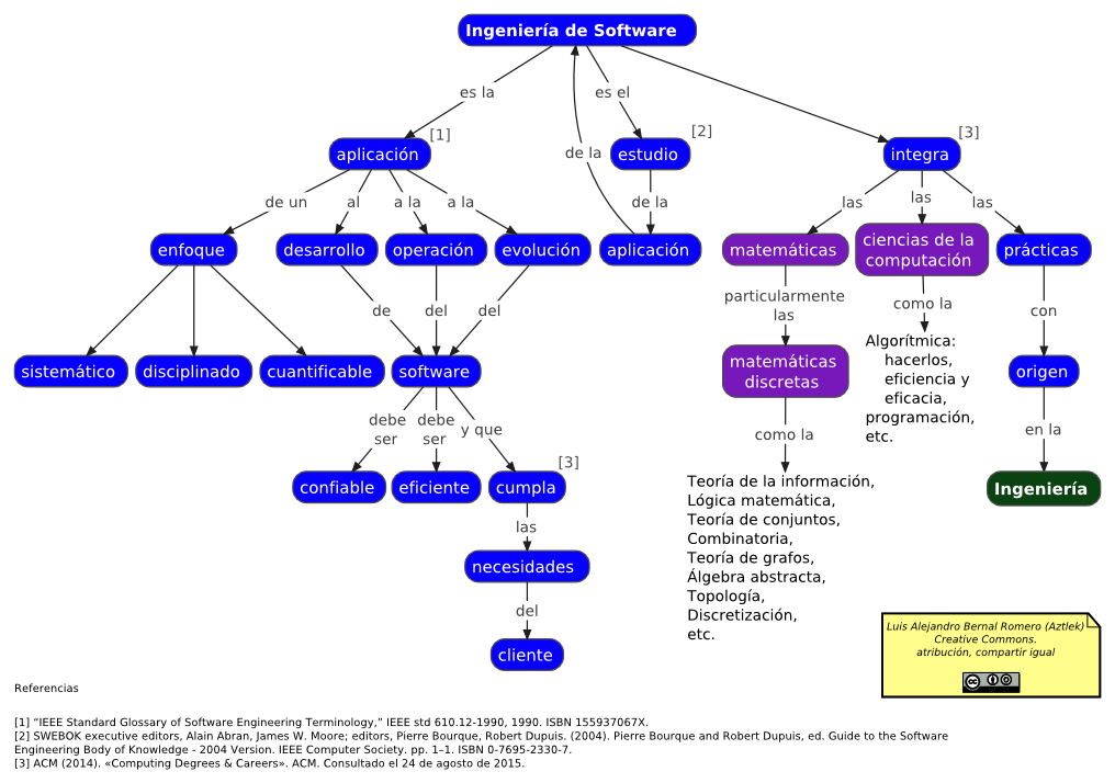 El siguiente mapa están los conceptos básicos de la Ingeniería de Software y sus relaciones.